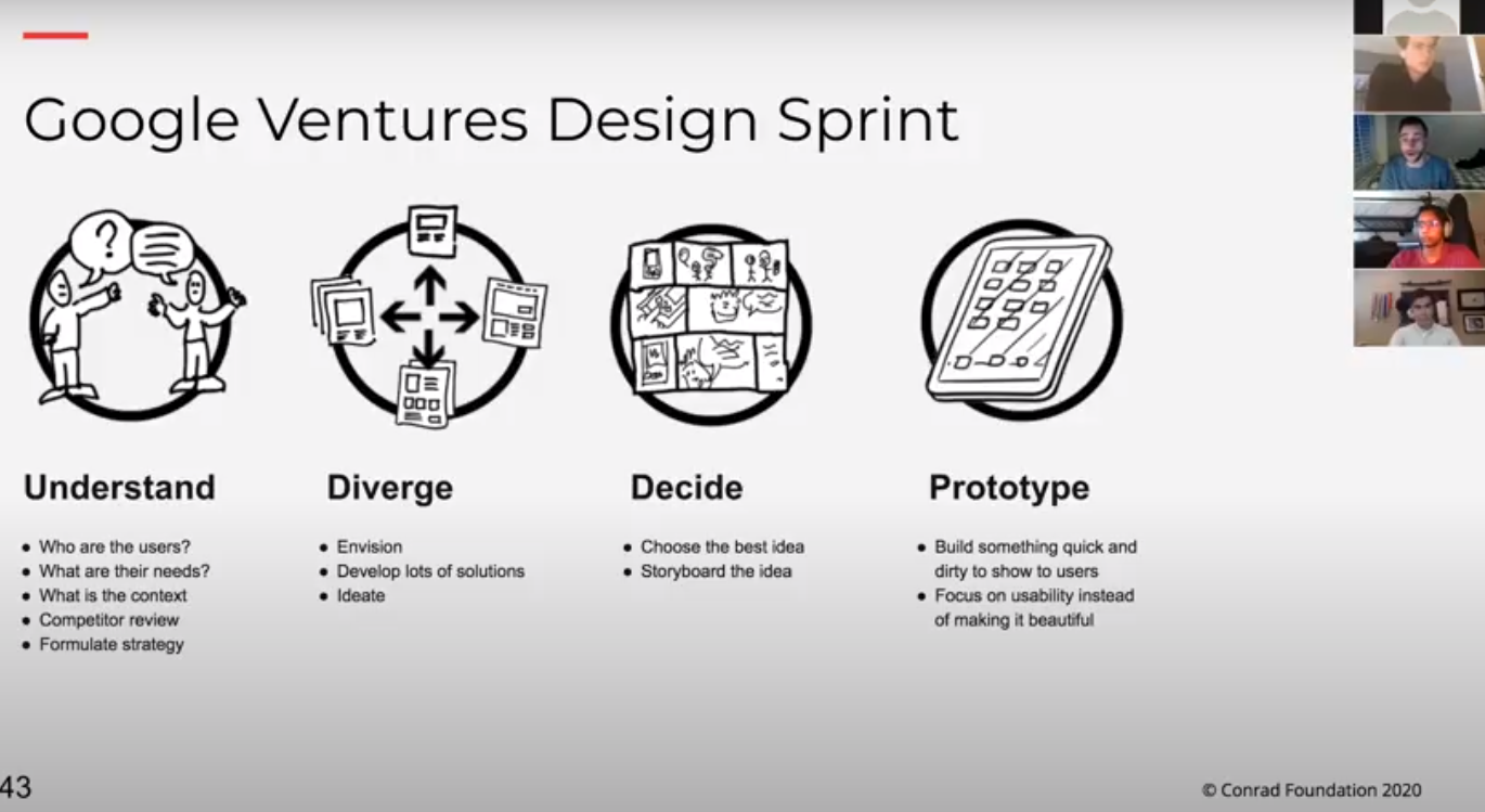 During the 2020-2021 year, I have the privilege to be a Team Leader within the Conrad Alumni Leadership Council, co-leading the Develop and Inspire team. Our team focuses on providing resources and opportunities for the Conrad Challenge community through a variety of initiatives like mentorship, webinars, workshops, and more!